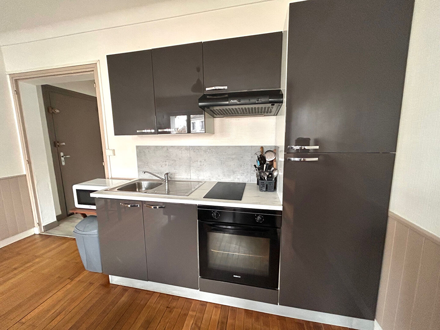 Une entrée donnant dans la pièce de vie avec une cuisine aménagée et équipée (plaque, four, réfrigérateur) et un salon/ séjour, une chambre avec penderie, salle d’eau avec toilettes.