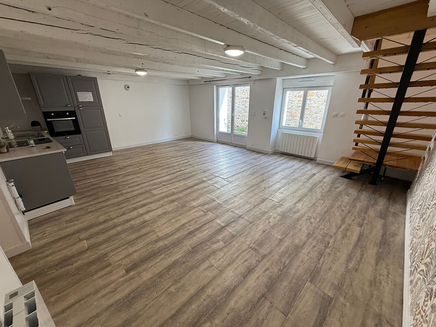 Référence de l'annonce : 4408Maison à usage d’habitation entièrement rénovée et située en fond d’allée au calme dans le bourg de SAINT JOACHIM à proximité des commerces et comprenant au rez-de-chaussée :