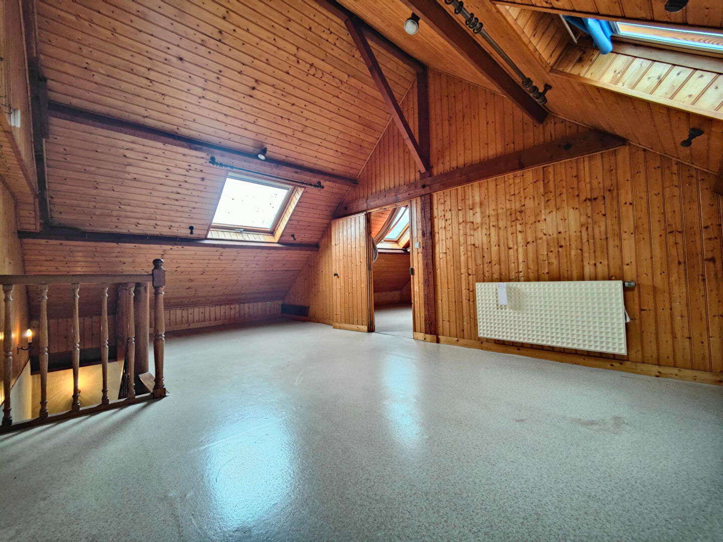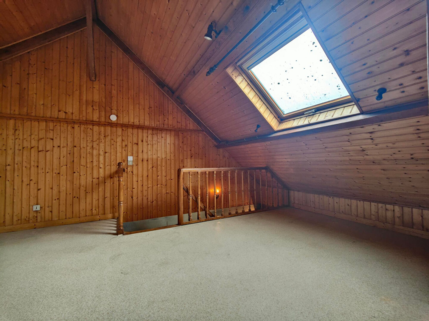 Le dernier niveau offre une belle mezzanine pouvant servir d’espace bureau ou de salle de jeux, ainsi qu’une chambre supplémentaire avec toilettes et lavabo.